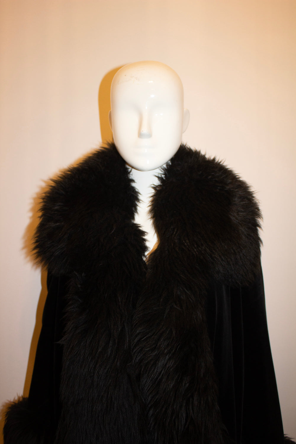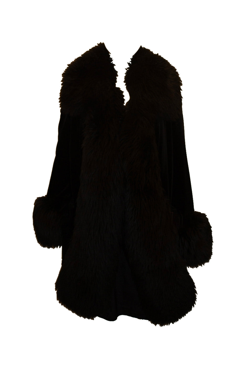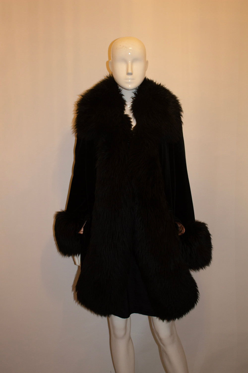 A stunning and rare vintage jacket by Vivienne Westwood., from the Dressing Up Collection. In black velvet with faux fur trim, the jacket has great tailoring and is a wonderful statement piece. The jacket has a vent at the back and two pockets at the front. Made in England.